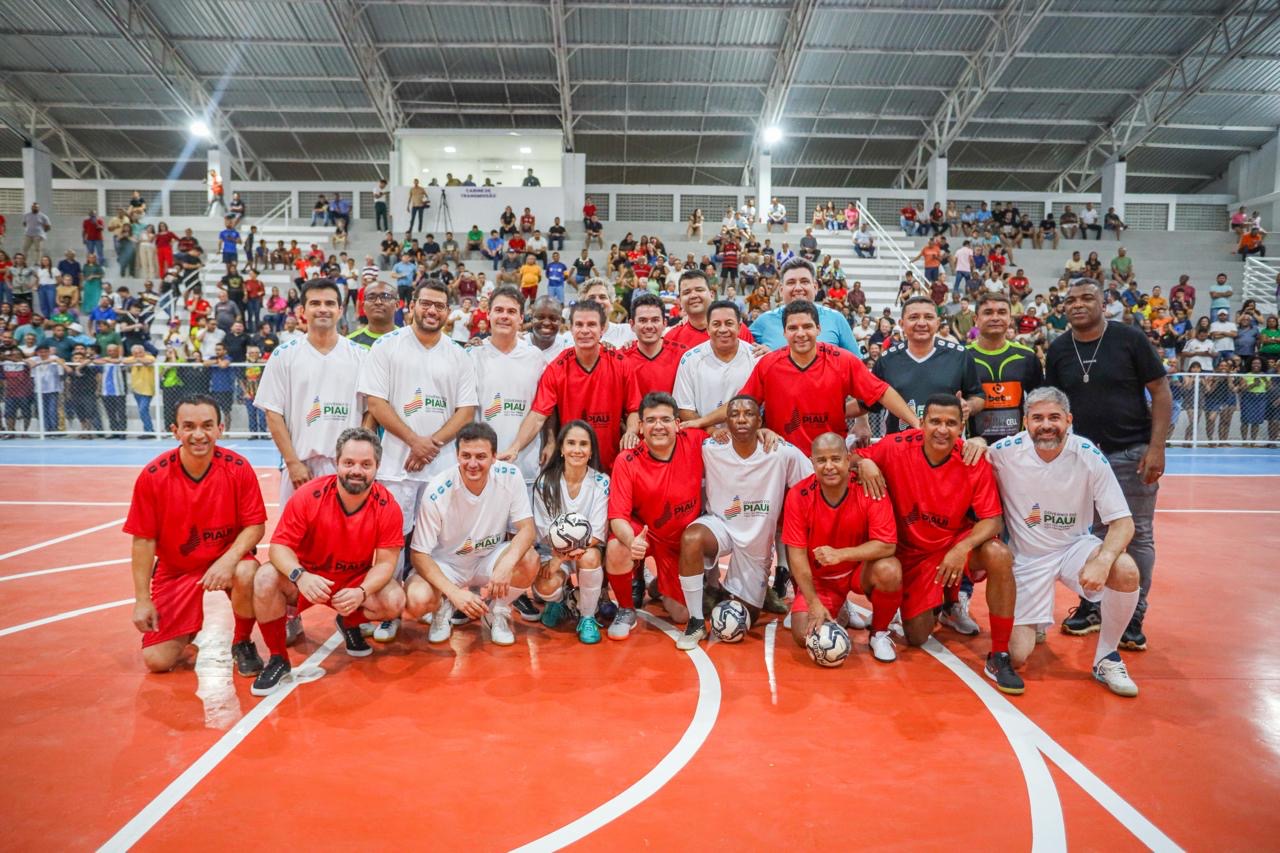 O governador Rafael Fonteles inaugurou, nesta quarta-feira (11), o Ginásio Poliesportivo Severo Maria Eulálio Filho, em Picos. O equipamento é um dos mais completos e modernos do Piauí e recebeu investimentos de R$ 6.902.912,42. A abertura foi uma grande festa com participação de astros do futebol brasileiro, como Marcelinho Carioca e Túlio Maravilha.