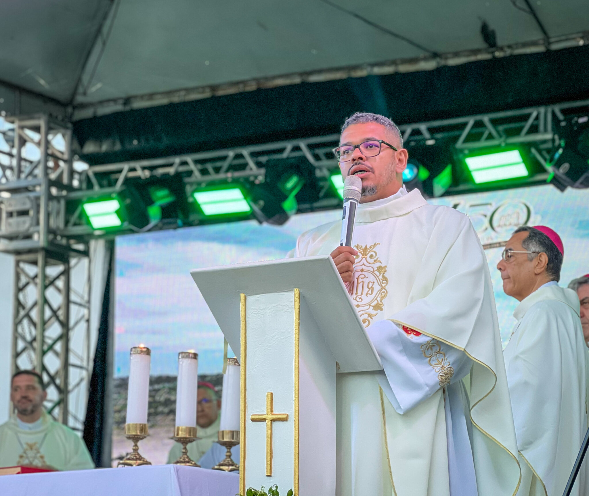 No final da tarde, o momento mais aguardado, a Missa Campal presidida pelo Cardeal Sérgio da Rocha, Arcebispo de São Salvador da Bahia e Primaz do Brasil, acompanhado pelos bispos das dioceses de Estância, Aracaju e Propriá. Conforme o arcebispo de Aracaju, Dom Josafá Menezes, a cerimônia envolveu fé e memória. “Celebrar a primeira missa é recordar não apenas a história da Igreja Católica, mas também sua atuação no estado, em benefício da população e da cultura local. É uma grande alegria viver este momento”, destaca.